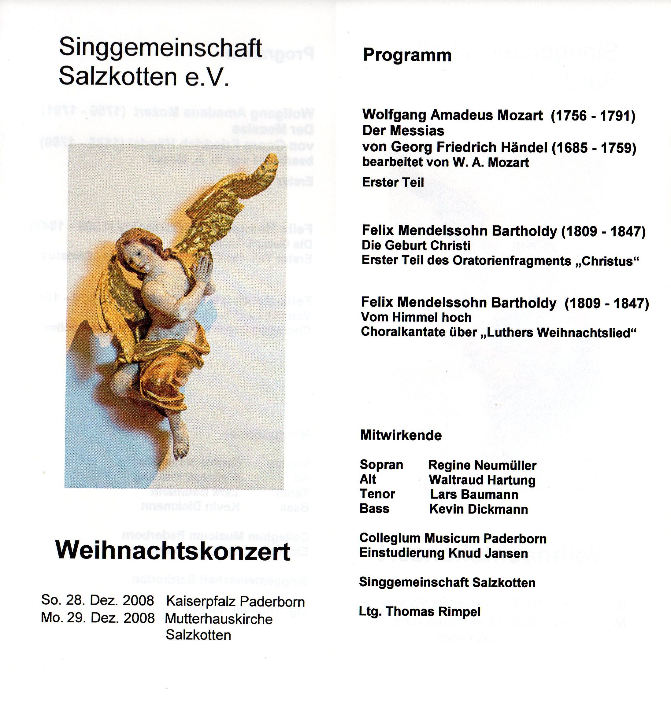 Wir veranstalten allein oder mit anderen Chören professionelle Konzerte, häufig auch zusammen mit namhaften Solisten und Orchestern. Traditionell und beim Publikum besonders beliebt sind unsere Weihnachtskonzerte zwischen den Jahren in Salzkotten und Paderborn.